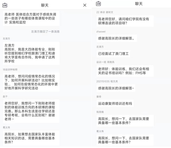在讲座最后,与会员工积极与高炳宏教授留言互动,并得到了第一时间的解答回应。高经理鼓励全体体训员工好好利用疫情线上教学时间,广泛阅读并整理文献,明确研究方向,撰写研究论文,珍惜美好年华、留下青春足迹。