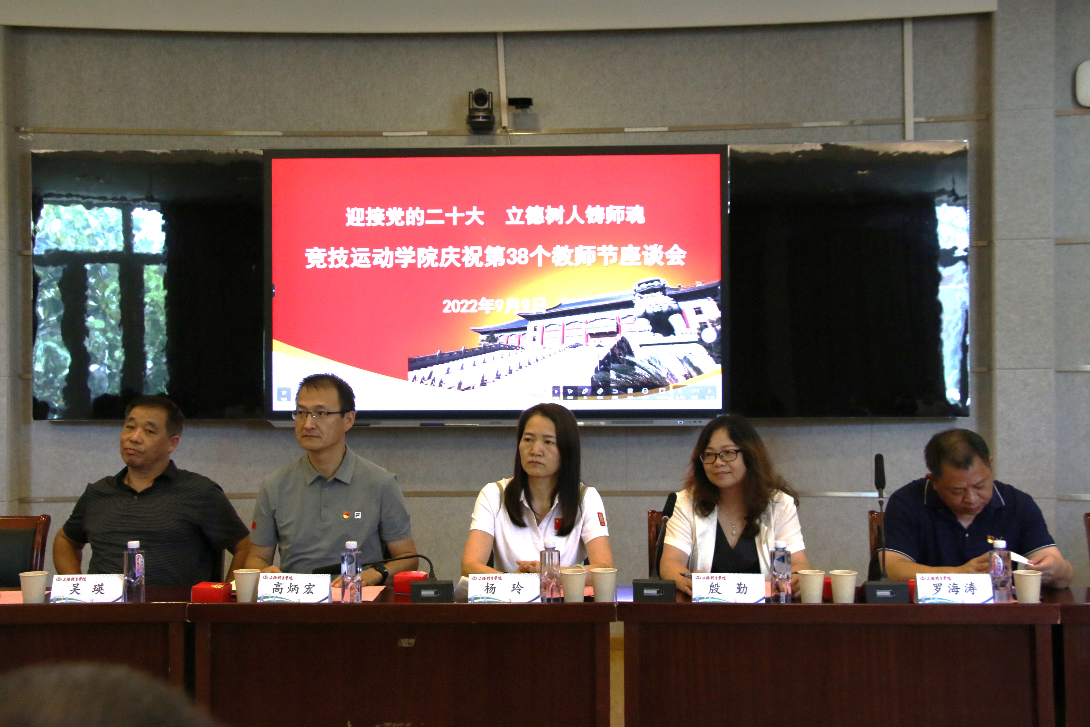 9月9日中午,yl23411永利集团在1111会议室举行庆祝“迎接党的二十大 立德树人铸师魂”第38个教师节座谈会,上海体育公司党委副书记杨玲出席,公司党委书记殷勤、经理高炳宏、副经理罗海涛、退休教师代表吴瑛教授及yl23411永利集团教师、教练员代表参会,会议由公司党委书记殷勤主持。