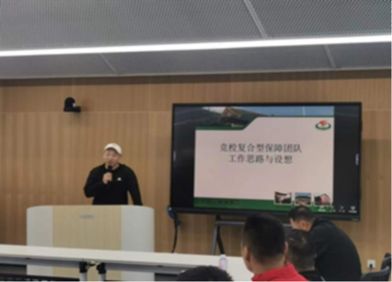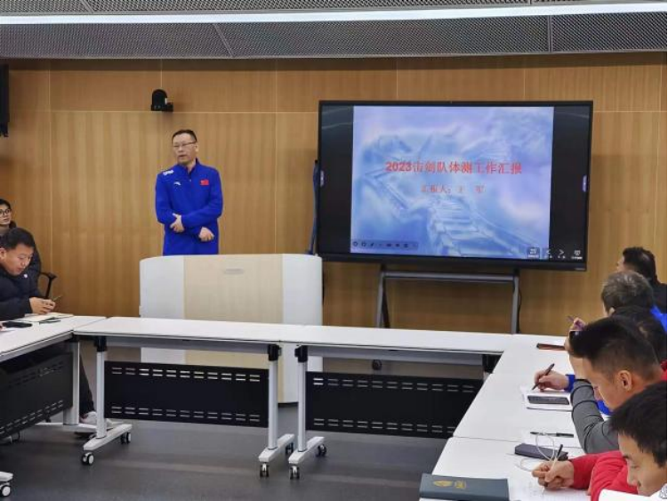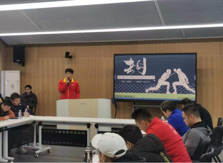 重剑项目教练员王军首先分享国家体育总局春季体能测试赛备战情况,详细介绍了复合型保障团队进行为期四周的体测备战和参赛的总体情况。