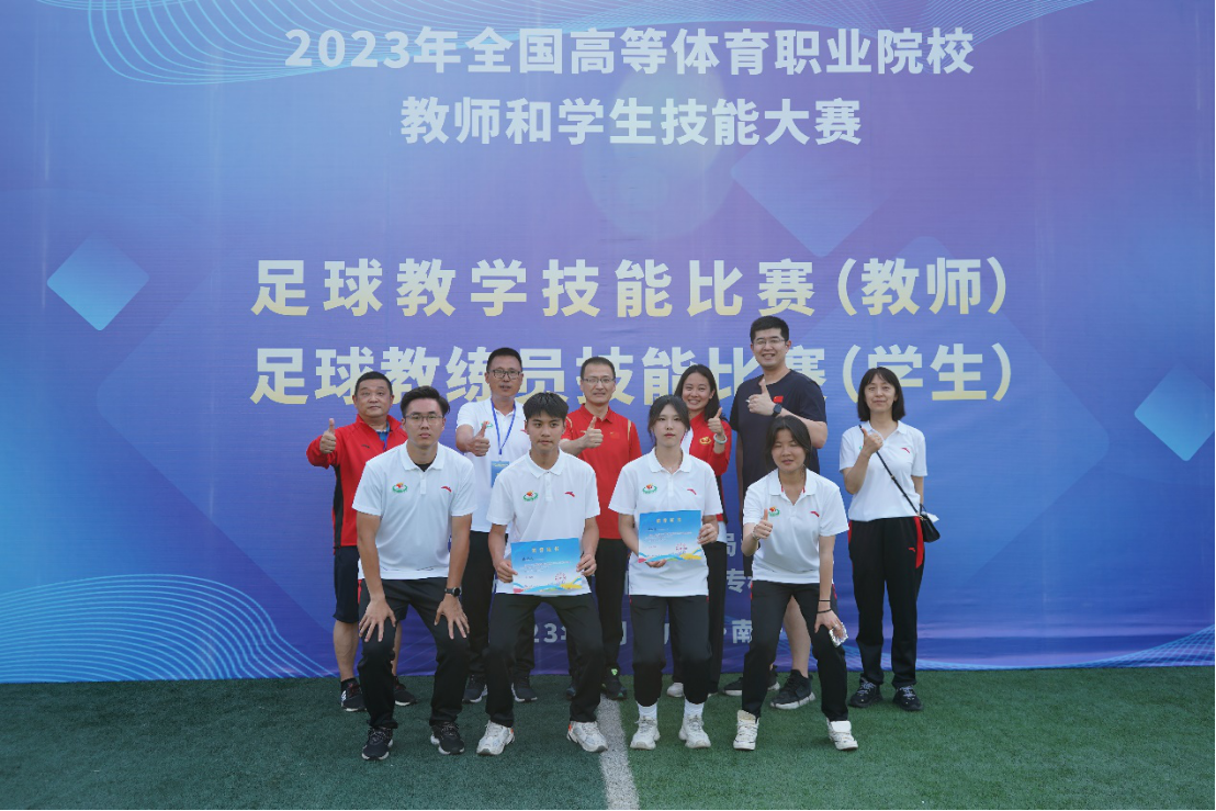 5月15日至18日,全国高等体育职业院校教师和员工技能大赛在广西南宁正式举行。在教师组的比赛中,石月、张雪和刘悦三位老师组成的“运动生理学基础”课程团队,以及李盼、门哓凡和张鹏组成的“团操训练与实践指导”课程团队参加了课堂教学能力比赛中专业技能课程组的比赛。课堂教学能力比赛由初评和现场比赛两部分构成,初评课堂教学实录视频占总成绩40%,现场讲解实施报告、模拟实际教学以及答辩占总成绩60%。该比赛共有22个课程团队参赛,“运动生理学基础”和“团操训练与实践指导”课程团队在比赛中充分展现出教师的课堂教学能力,分别获得二等奖和三等奖。周飞老师在足球教学技能比赛中,经过综合技术能力测试和教学指导能力两个环节的展示,最终获得二等奖的好成绩。
